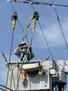 電柱から、ご家庭・工場・商店等の建物に電力を送る引込線工事を行います